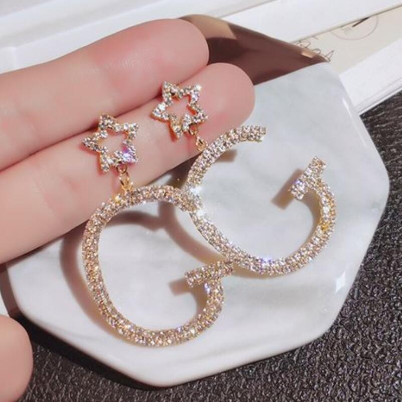 Style: Korean style/Korean styleMaterial: AlloyTreatment process: electroplatingType: EarringsStyle: Women'sModeling: GeometryInlaid material: alloy inlaid artificial gems/semi-precious stones