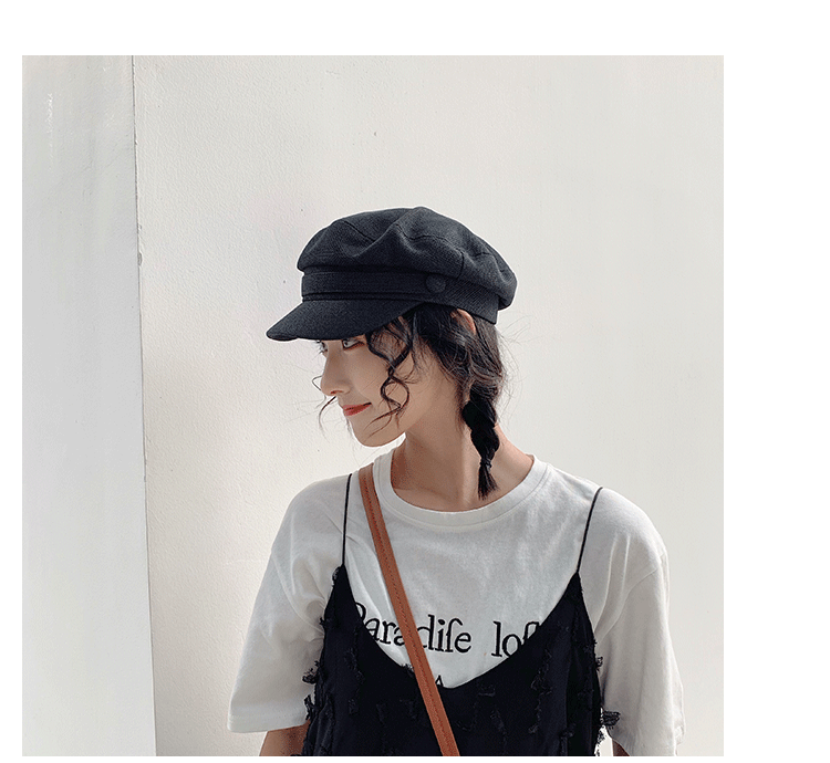 material: cotton style: Casual Weaving methodProcessing method: satin filePopular elements: light bodyCap top style: flat topHat style: shortColor : khaki, black, glutinous rice, dark blue, milk white, graySize; M (56-58cm)