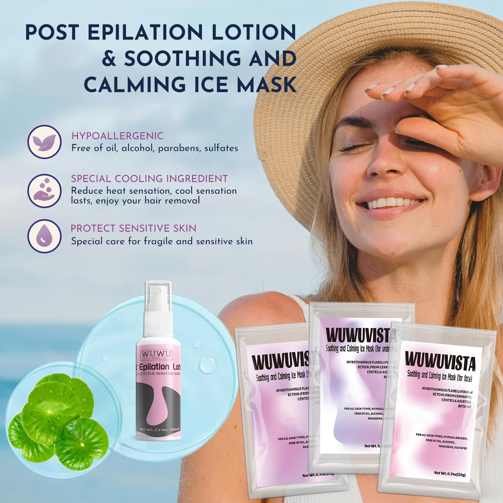 • Post Epilation Lotion (Centella + Beta-Glucan) reduces irritation