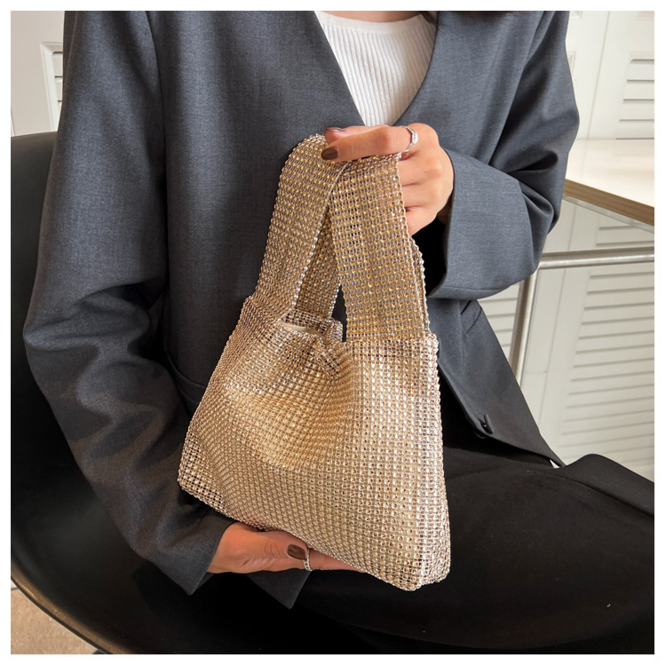 Specifications:Color: Black, silver, goldStyle: Street trendMaterial: PuWidth: 24cmHeight: 17cmThickness: 5cmHandle height: 12cm