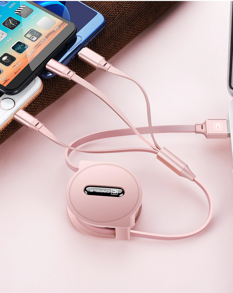 Telescopic three-in-one charging line mobile phone multi-function multi-head