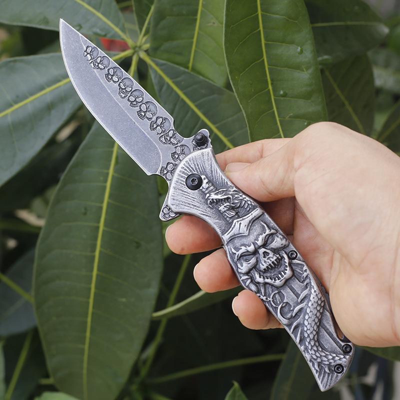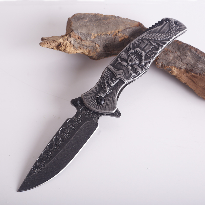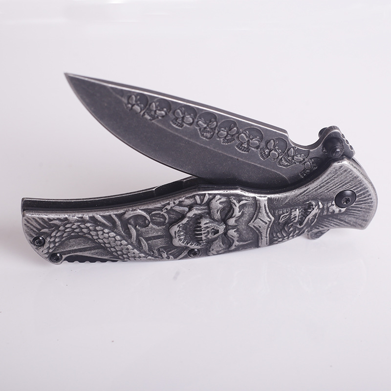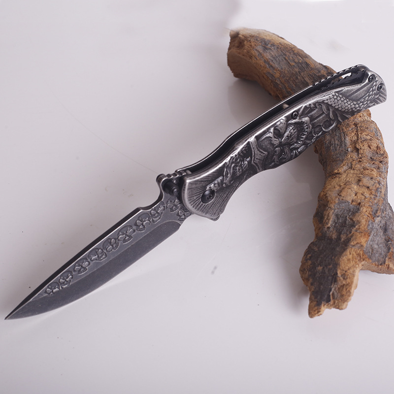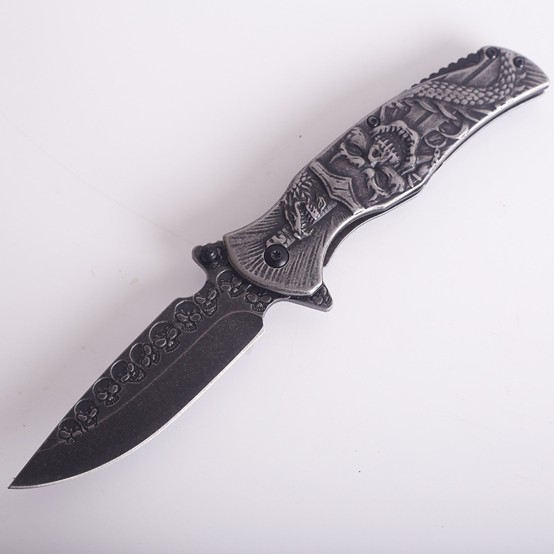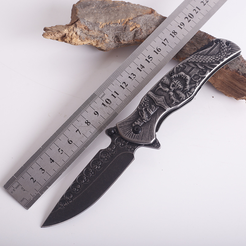 Total length: 20.5cmBlade length: 9cmBlade thickness: 3mmBlade width: 2.5cmHandle length: 11.5cmHardness: 57HRCHandle material: embossed steelBlade material: 3CR13 stainless steelTotal length: 205