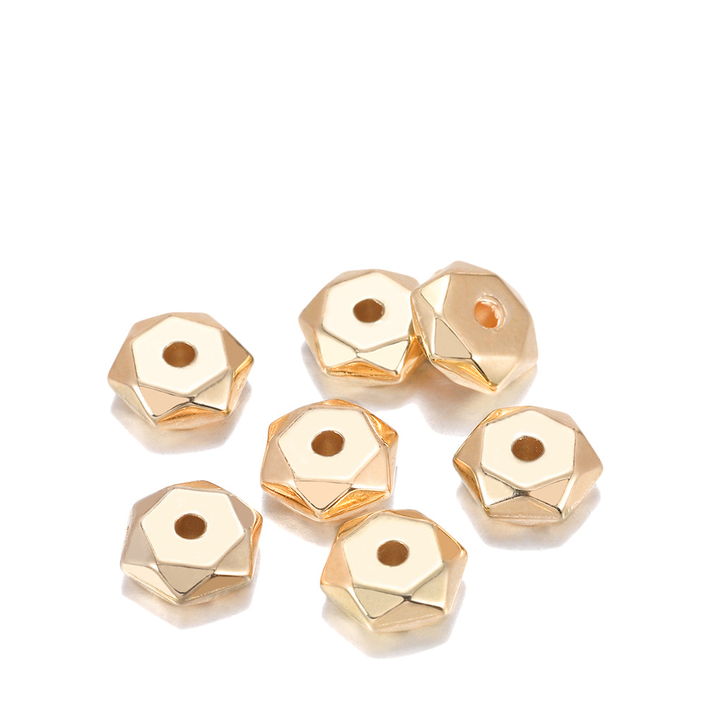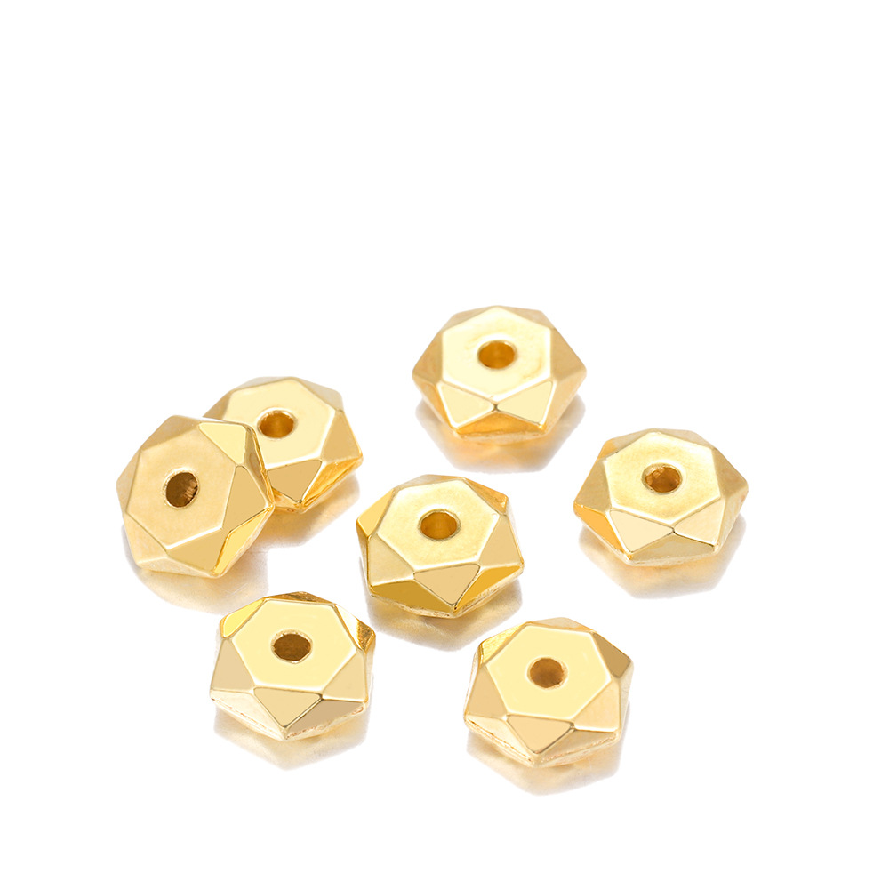 Product informationName: CCB hexahedral spacer beadsItem No.: AC0481Color: kc gold, rhodium, bronze, goldSize: 7mm diameter 1.2mm 200 pcs/packPurpose: Handmade DIY accessories, necklace and bracelet beadedPacking listBeads x1 pack