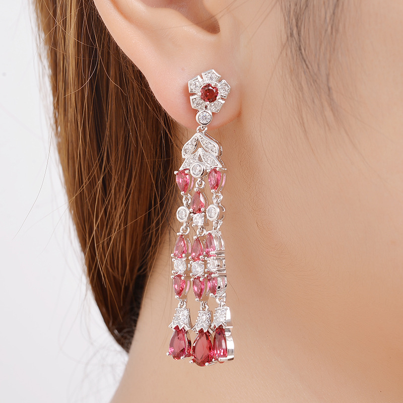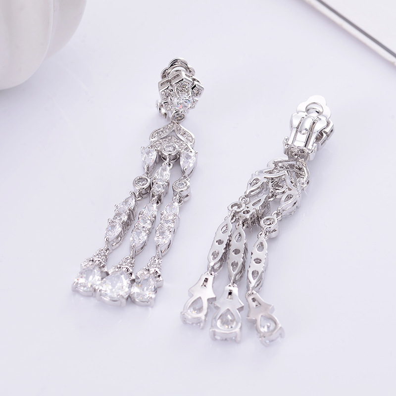 Color: White Zirconium Platinum 925 Silver Pin, Rose Red White Gold 925 Silver Pin, Golden Platinum 925 Silver Pin, White Zirconium Platinum (Ear Clip Style)