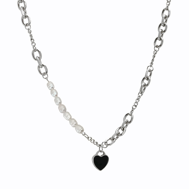 Color: Black love pearl necklace