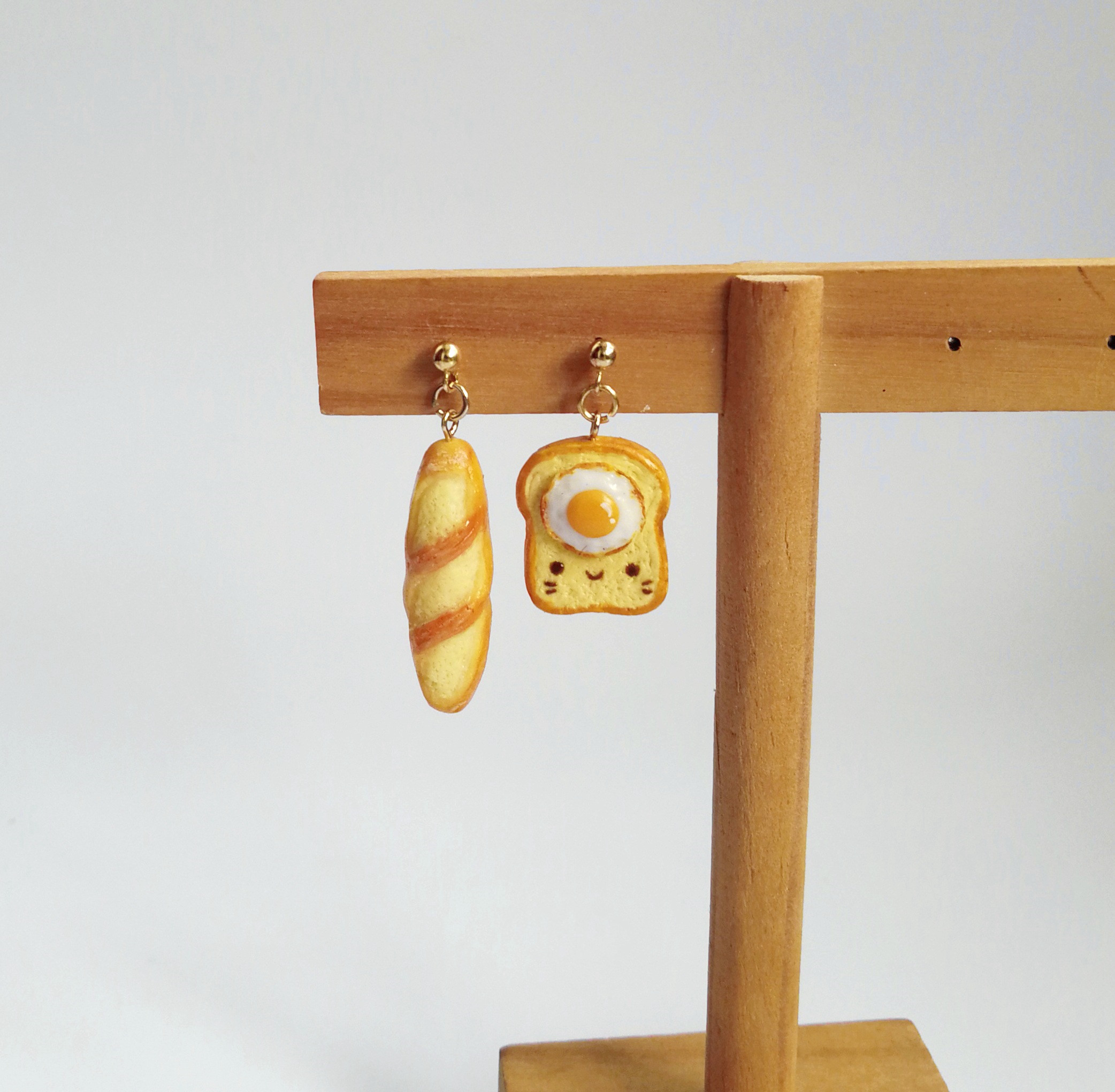 Color classification: French loaf earrings a pair of French loaf copper spiral ear clips a pair of French loaf + fried egg toast (silver earrings) French loaf + fried egg toast (a pair of copper ear clips) French loaf + toast (a pair of silver round bead earrings) )