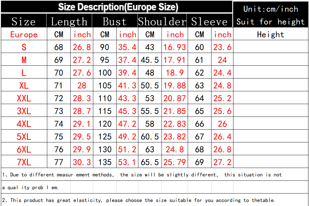 Size: XS,S,M,L,XL,XXL,XXXL,4XL,5XL,6XL,7XL,8XL