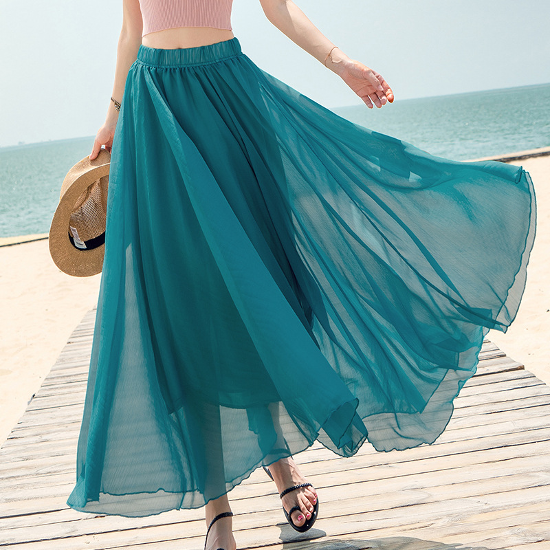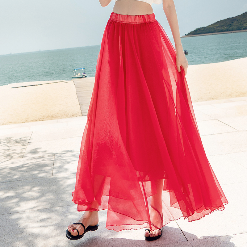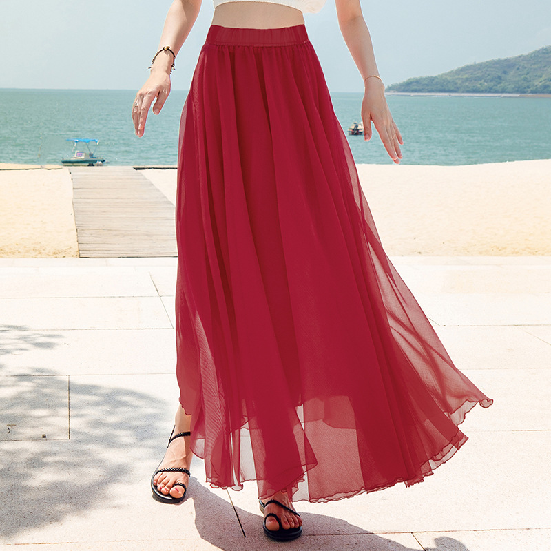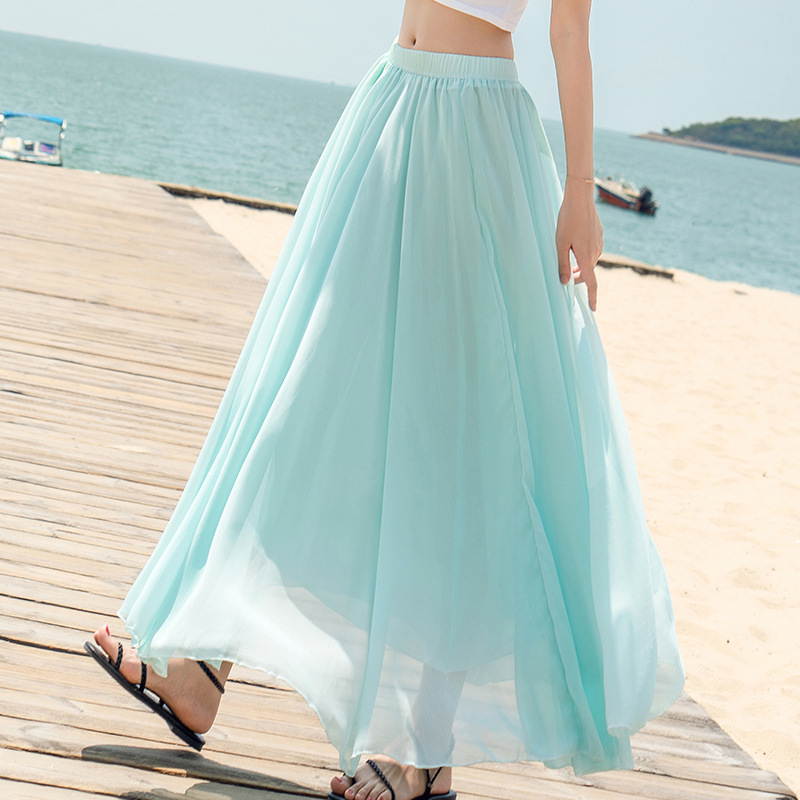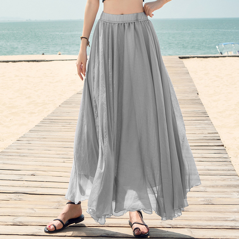 Product information: Pattern: solid color Skirt type: fairy dress Main fabric composition: Mulberry Silk Style type: fresh and sweet Skirt length: long skirt Skirt Category: skirt Style: Princess style Craft: collage/stitching