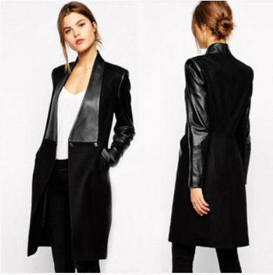 New style Patchwork Leather Medium Length slim coat windbreaker