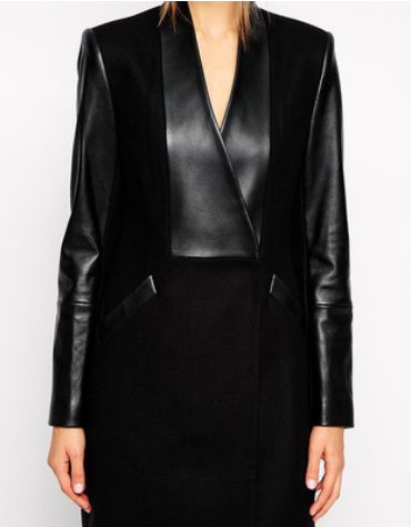 Star's new style Patchwork Leather Medium and long slim woolen overcoat and woolen coat girl