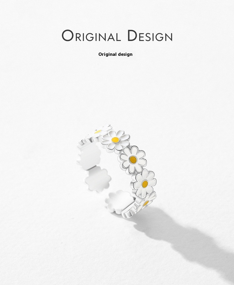 S925 Sterling Silver Enamel Little Daisy Women's Ring