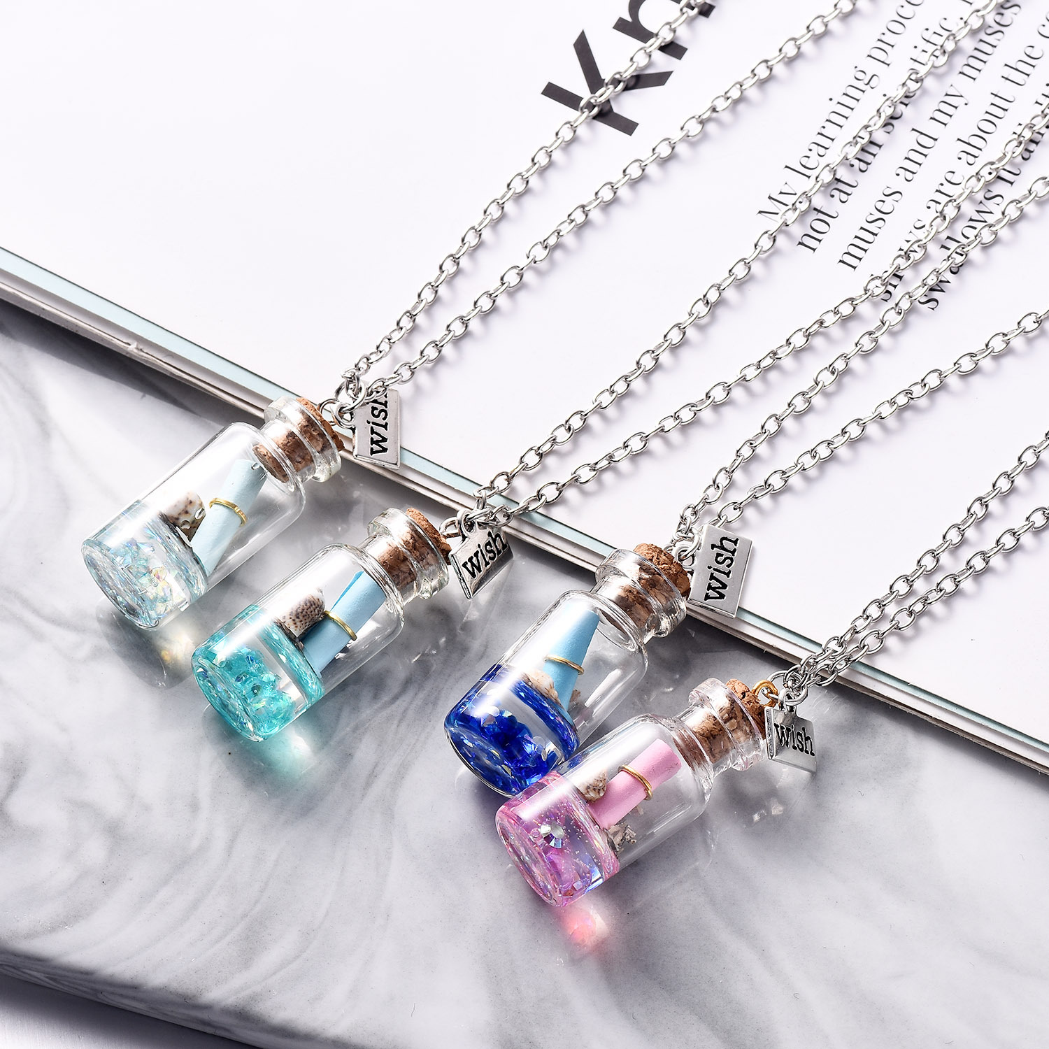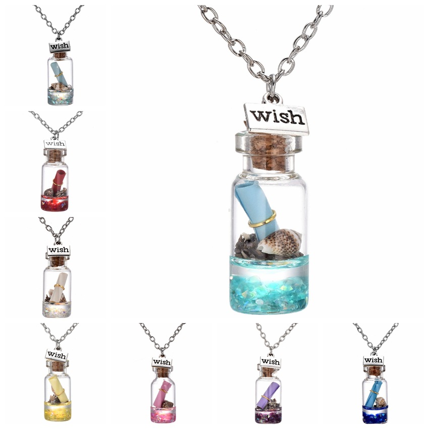 Specifications:Product name: Drift bottle necklaceProduct category: NecklaceProduct material: GlassColors: Red, yellow, green, blue, purple, white, lake blue, pinkPacking list: