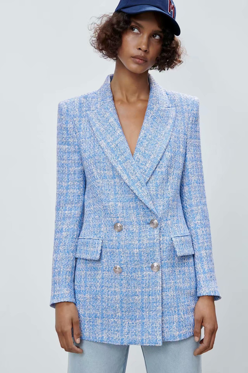 European and American za women's clothing wholesale 2021 spring and summer new plaid texture blazer 1175.