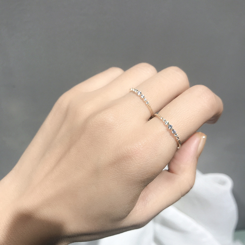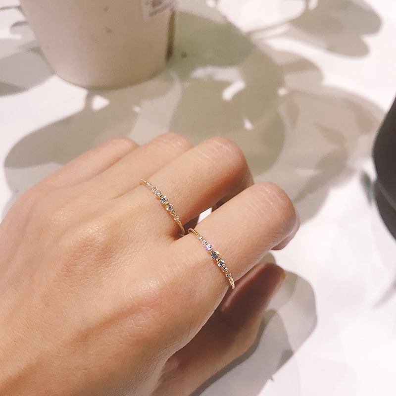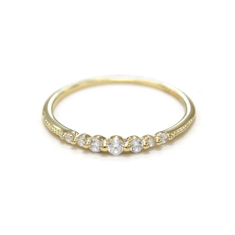 Bright seven zircon sterling silver plating 14K gold ring