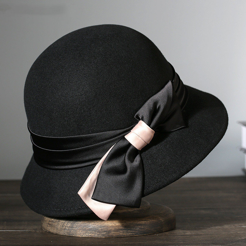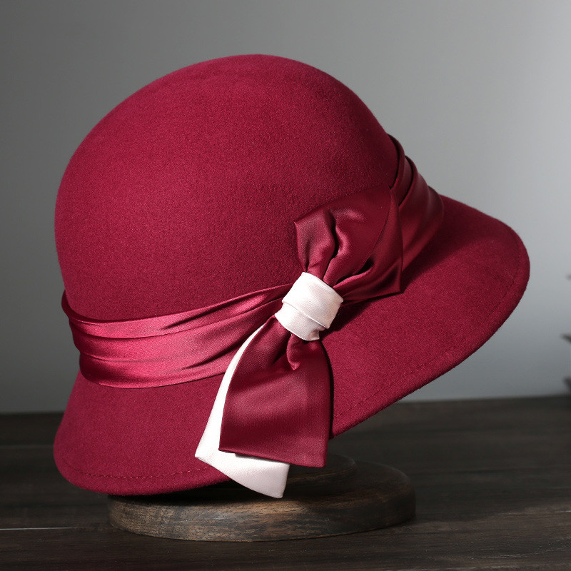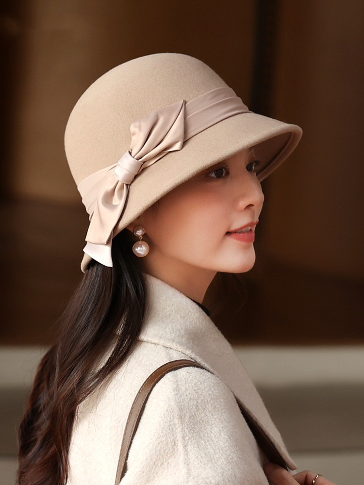 Product information:Pattern: Monochrome Color: black, wine red, light khaki, dark khaki Processing Method: Jacquard Size: adjustable (56-60cm) Material: Wool Popular elements: Bow Style: European and American