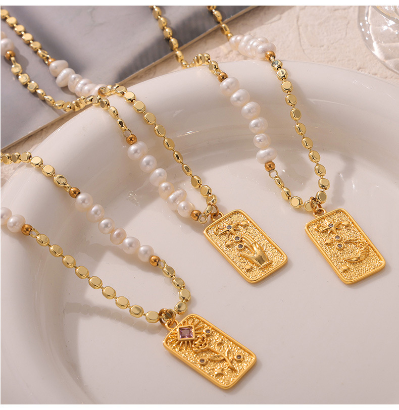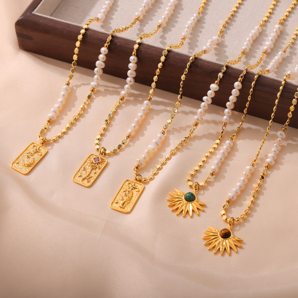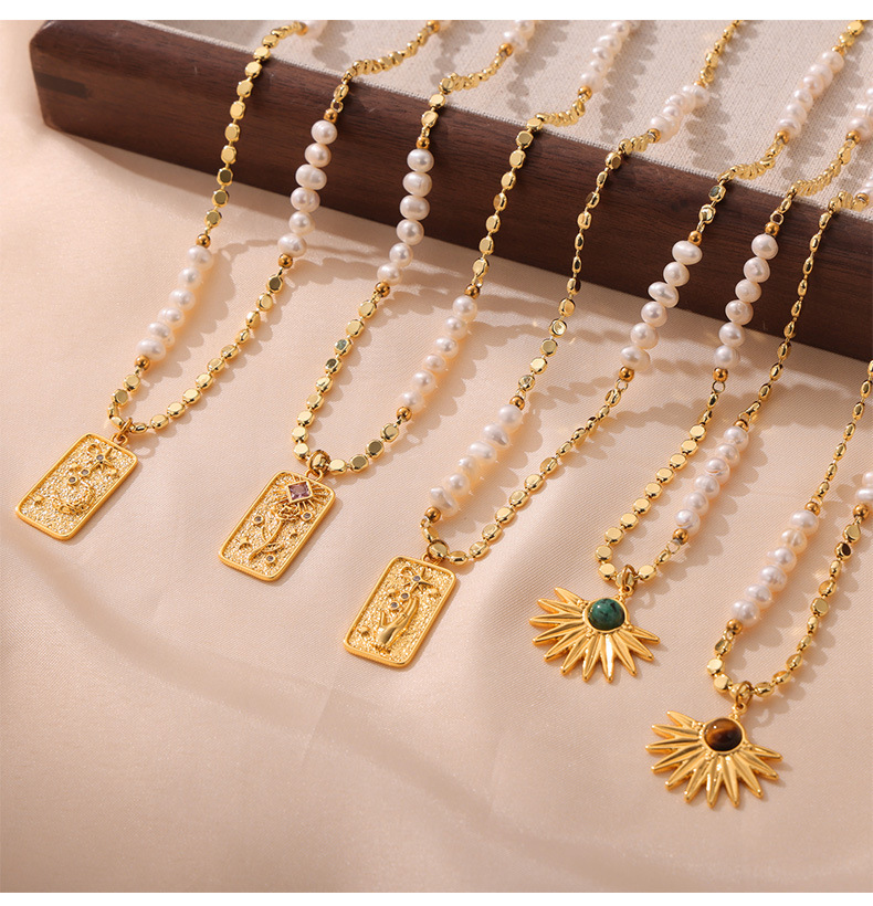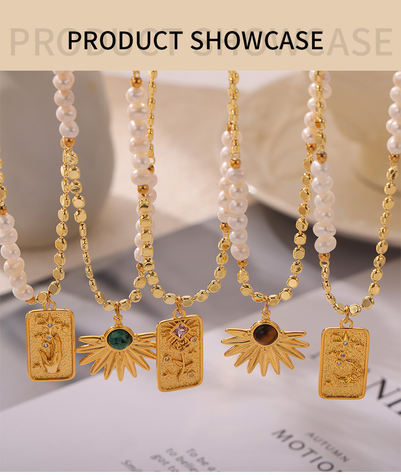 Color: P1912-gold tiger eye necklace, P1912-gold agate necklace, P1913-gold rose necklace, P1913-gold hand Star moon necklace, P1913-Gold Star moon necklace
