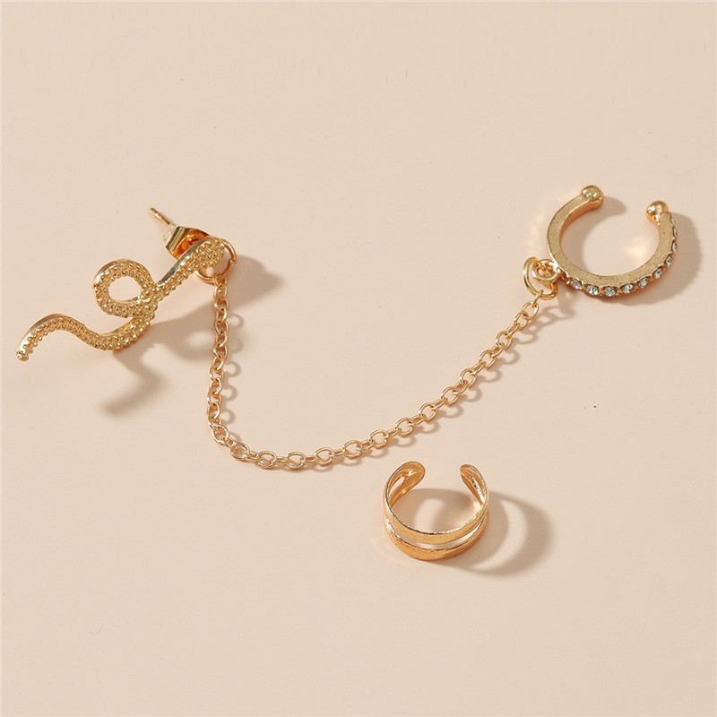 Cold Wind No Hole Earring Set Retro Zircon Snake-shaped Chain Ear Clip