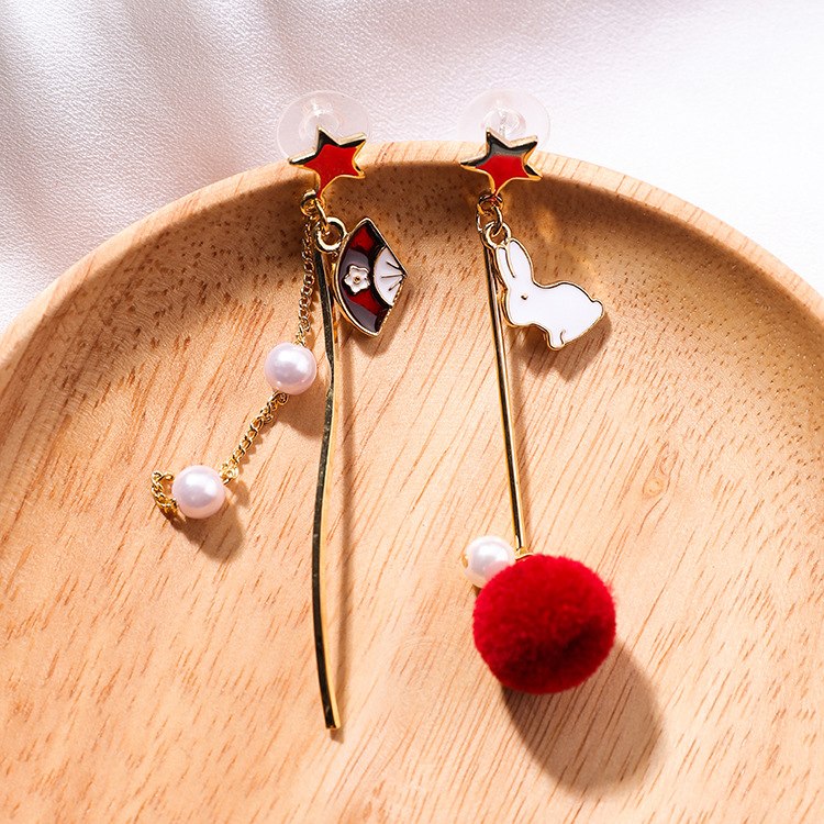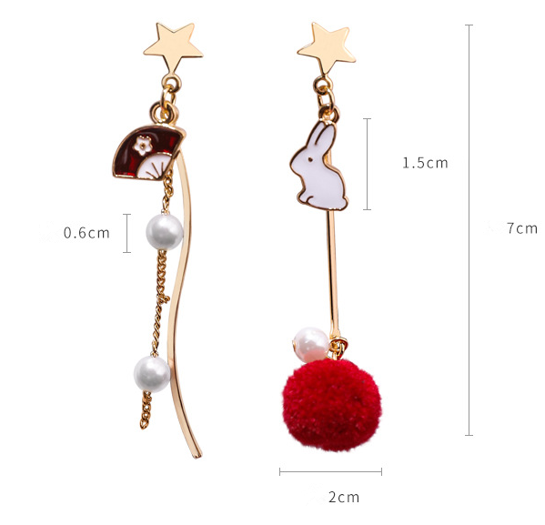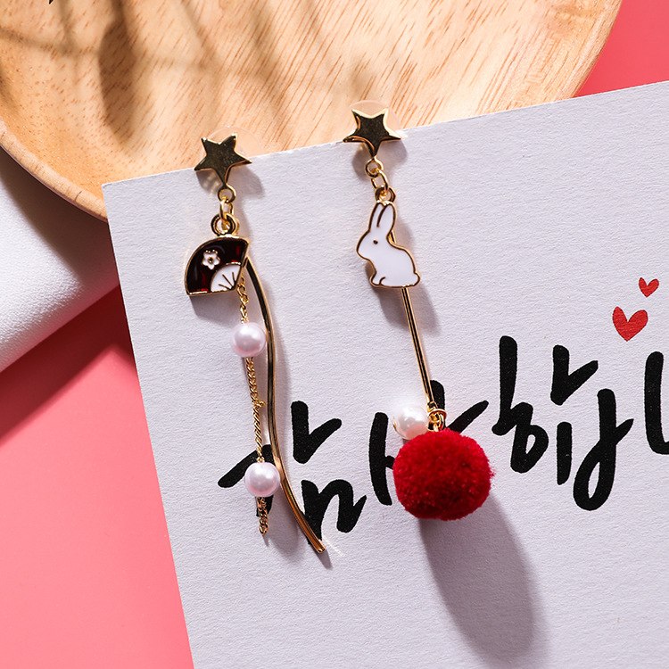 Sweet Cute Rabbit Hair Ball Asymmetric Earrings Personality Sweet Fan Curved Star Earrings Female For Women Stud Earrings