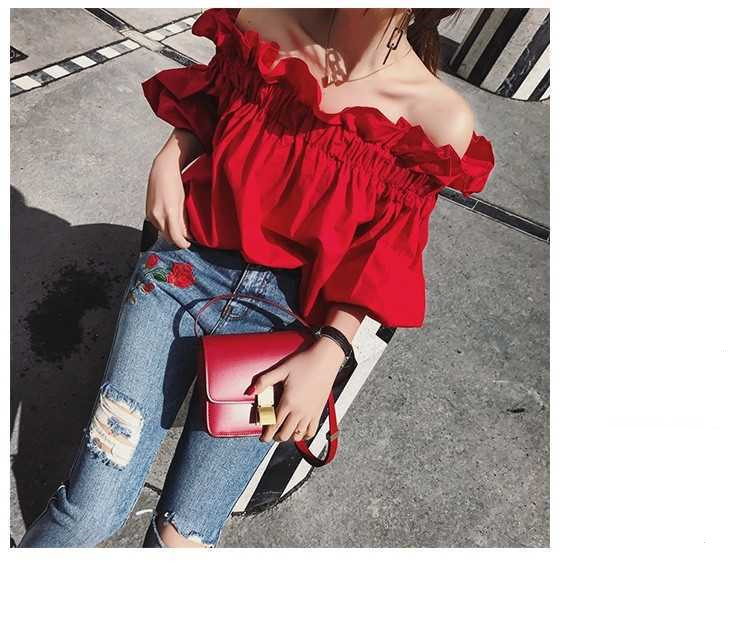 Material: PolyesterStyle: OL commutingFeatures: One-word collar, five-point sleevesColour: red