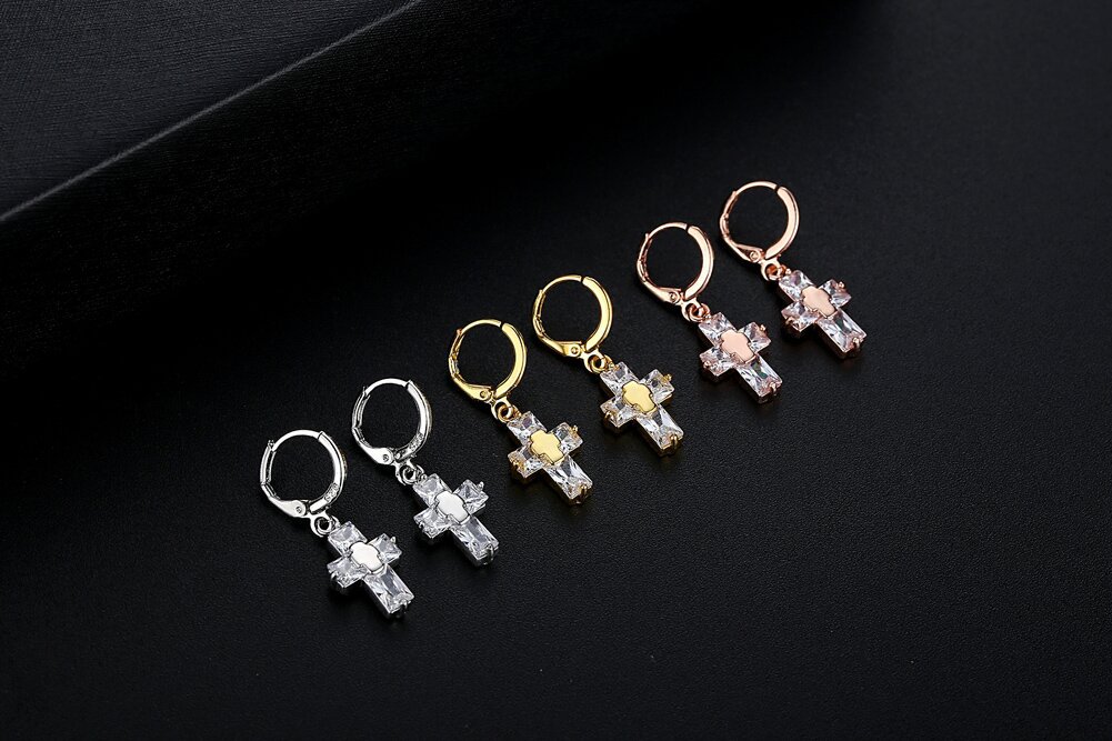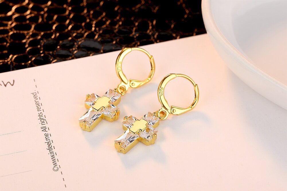 Product information:Treatment Process: inlaid zircon Type: ear clip Color: gold, rose gold, white gold Style: Women's Material: Copper Shape: Cross Popular elements: Cross
