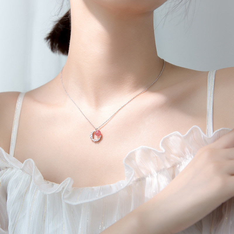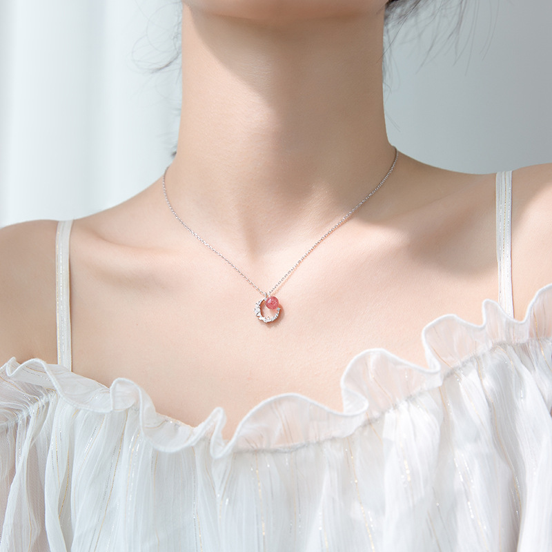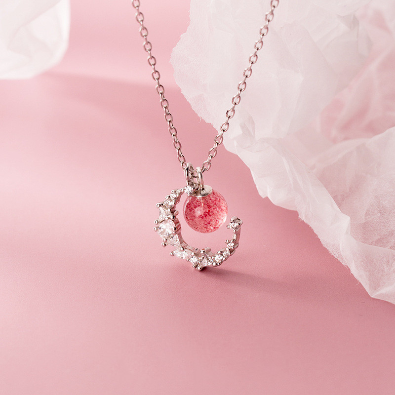 S925 Silver And Sweet Strawberry Crystal Necklace Female Korean Version