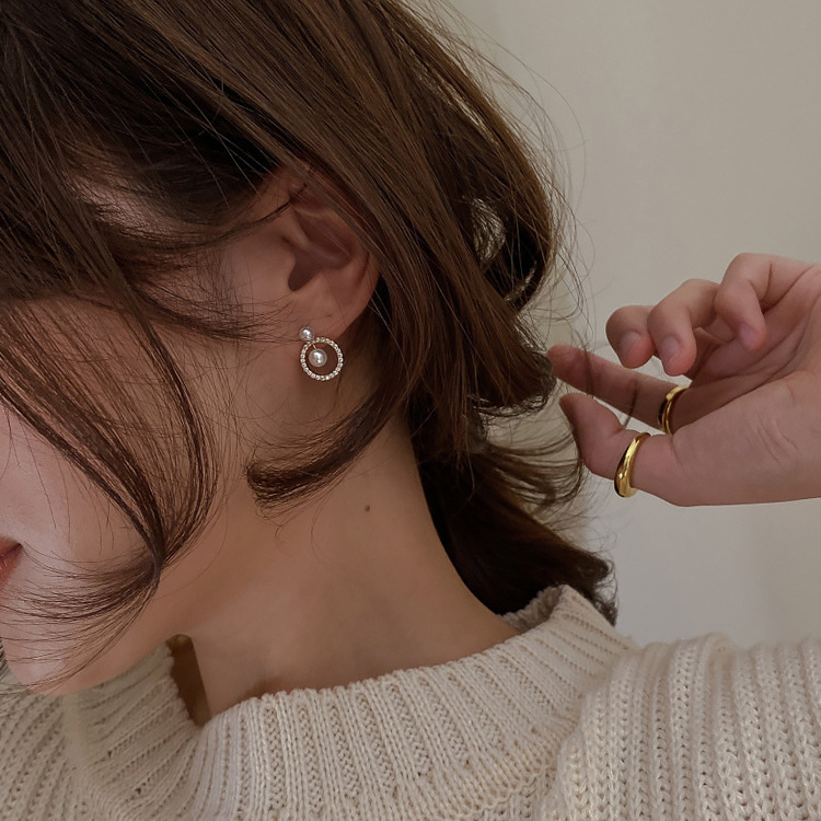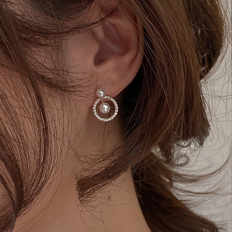 French Geometric Round Zircon Pearl Earrings