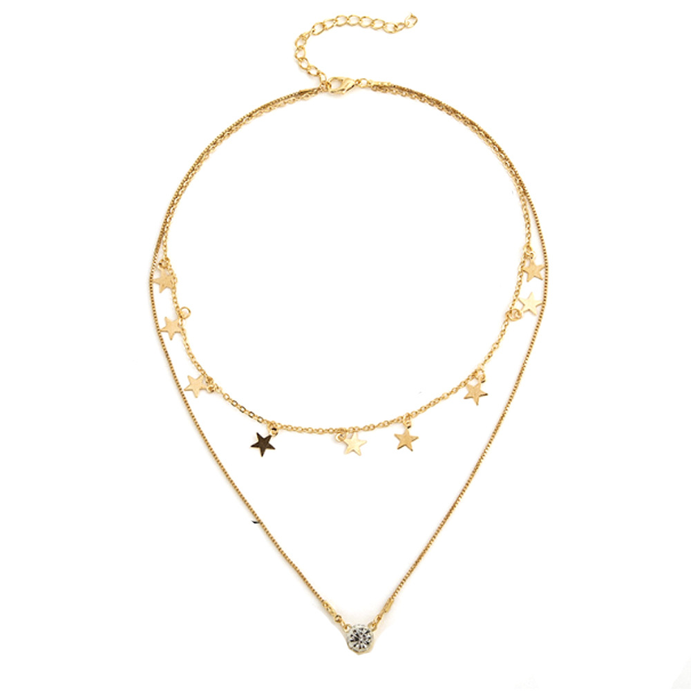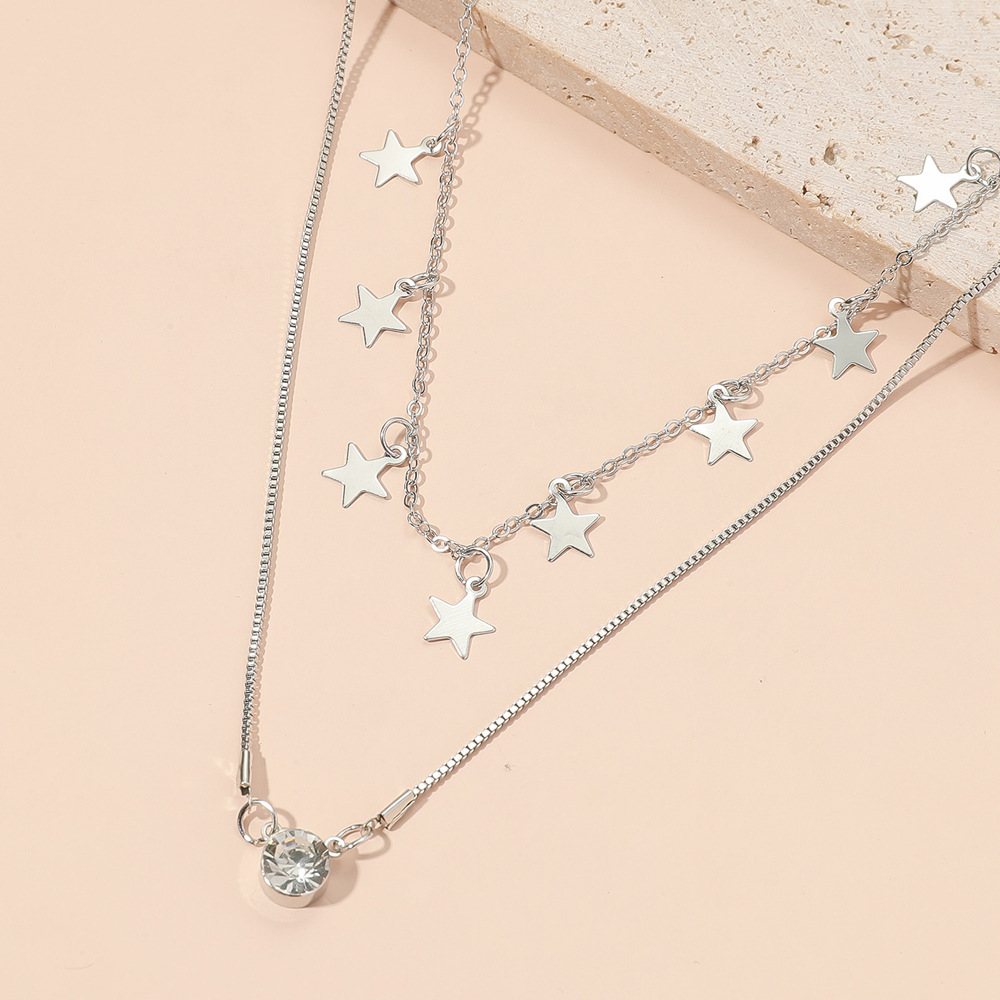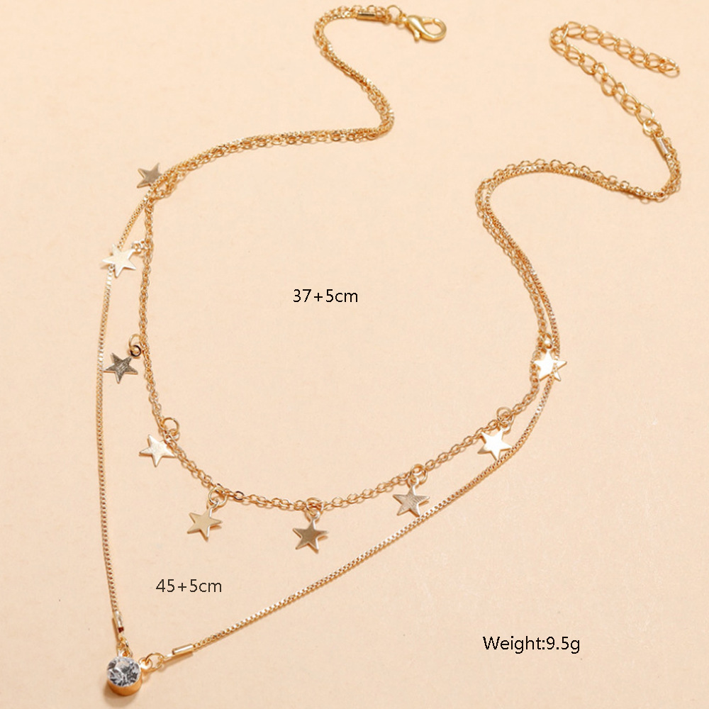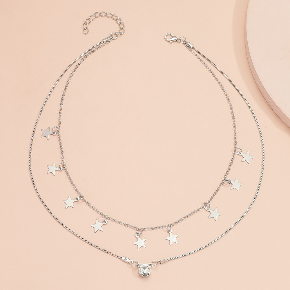 Features: Star Pentagram Pendant personality diamond-encrusted necklace clavicle chain