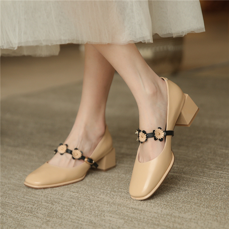 Popular elements in Europe and America: shallow mouth, flowers, thick heel, heel height: middle heel (3-5cm)