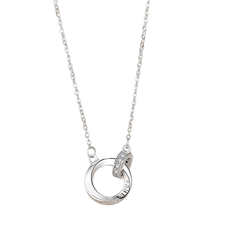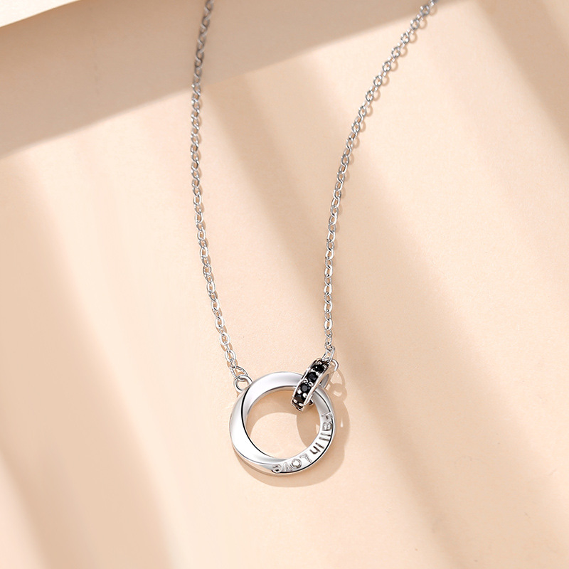 Color: Black Diamond Double ring couple necklace men, white diamond double ring couple necklace women