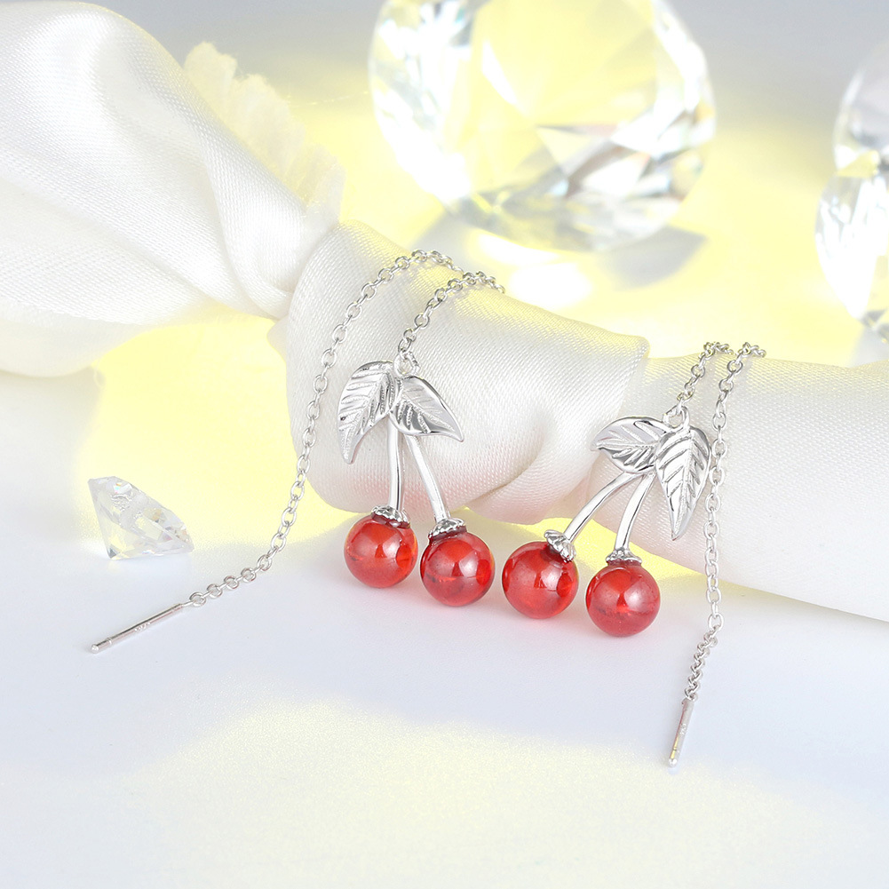 S925 Sterling Silver Earrings Red Cherry Pomegranate Red