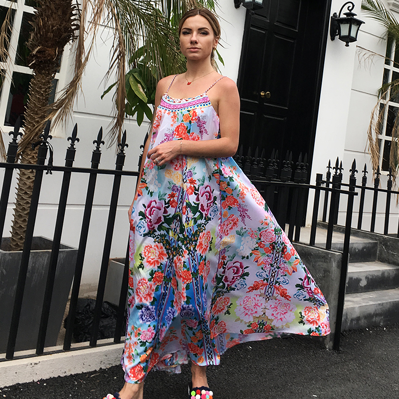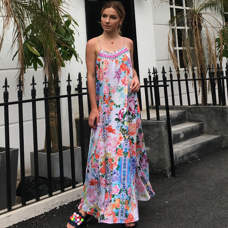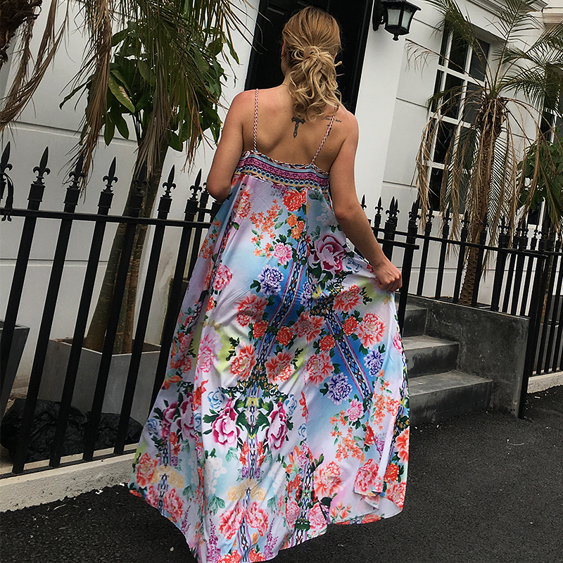 USA SIZE Sexy Sling Halter Dress Beach Vacation Bikini Sunscreen Print Maxi Dress