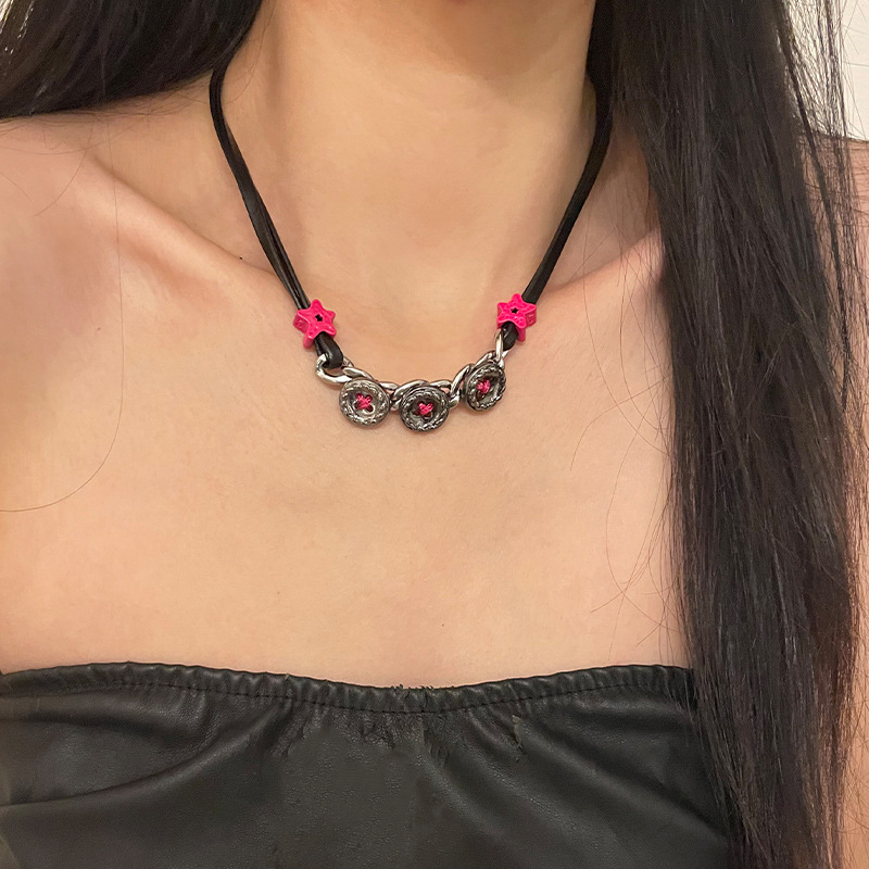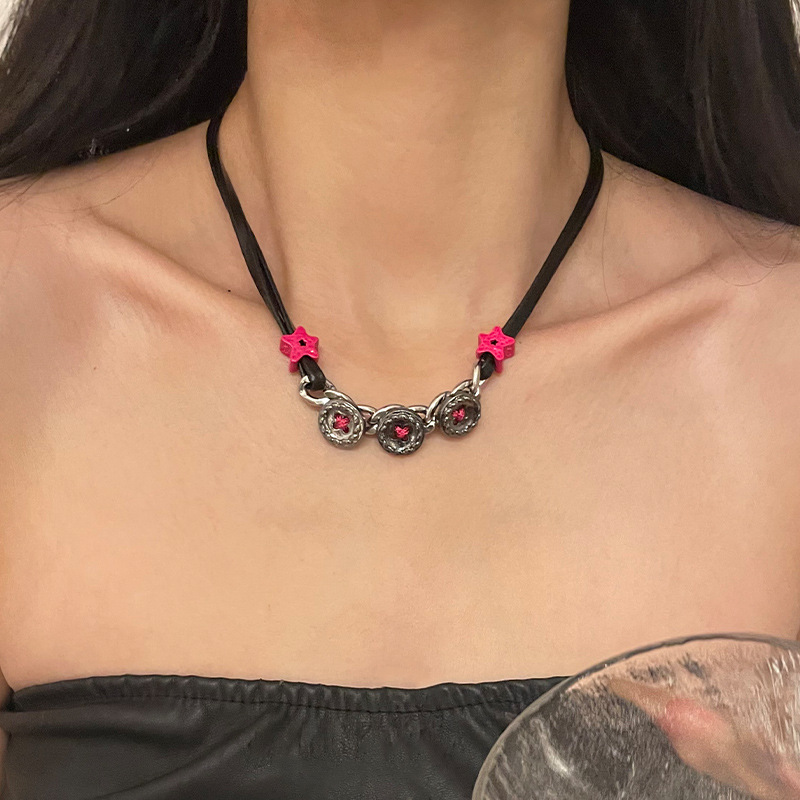 Product information:Color: Gun black button XINGX necklaceApplicable people: womenPendant material: AlloyChain style: clavicle chainMaterial: mixed materialShape: Star, geometricPopular elements: five-pointed starStyle: net red wind