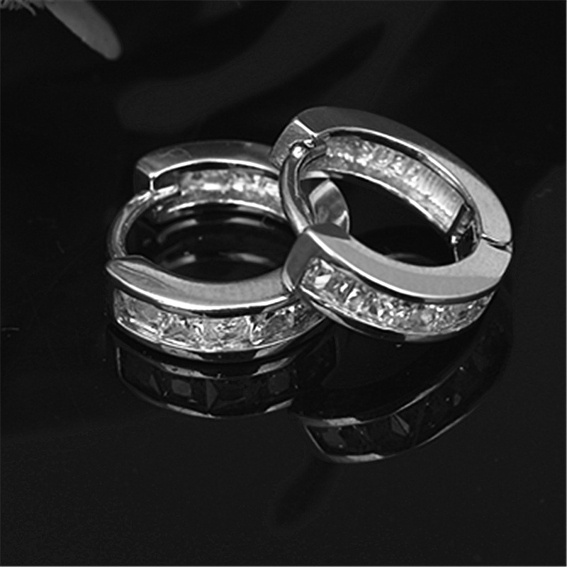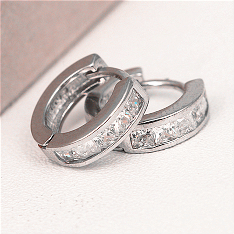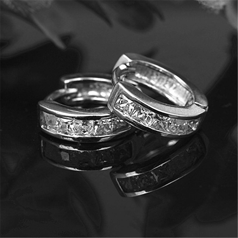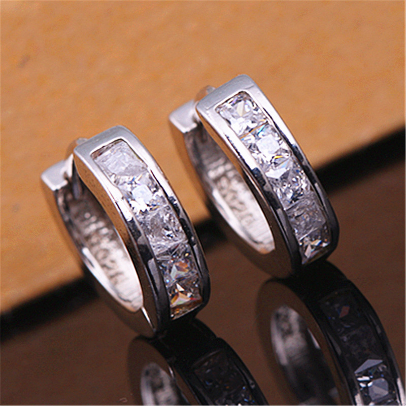 White gold inlaid square full zircon earrings