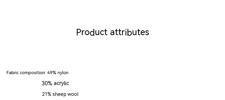 Material composition: polyamide fiber (nylon) 49% polyacrylonitrile fiber (acrylic fiber) 30% wool 21%