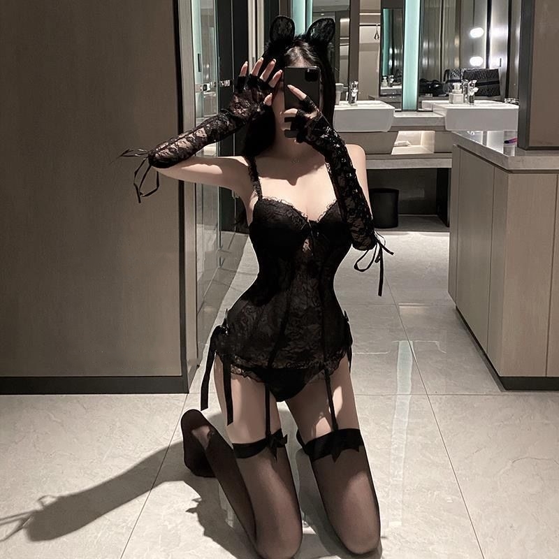 4Set:Cat Girl Bodysuit+Bow Stockings