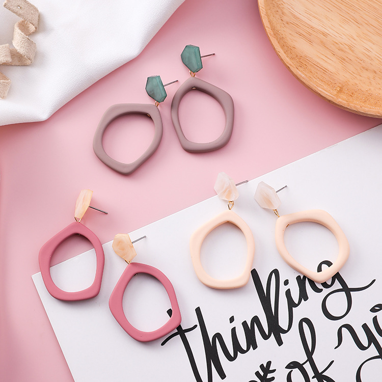 Wild hollow irregular acrylic earrings female geometric contrast color marble earrings