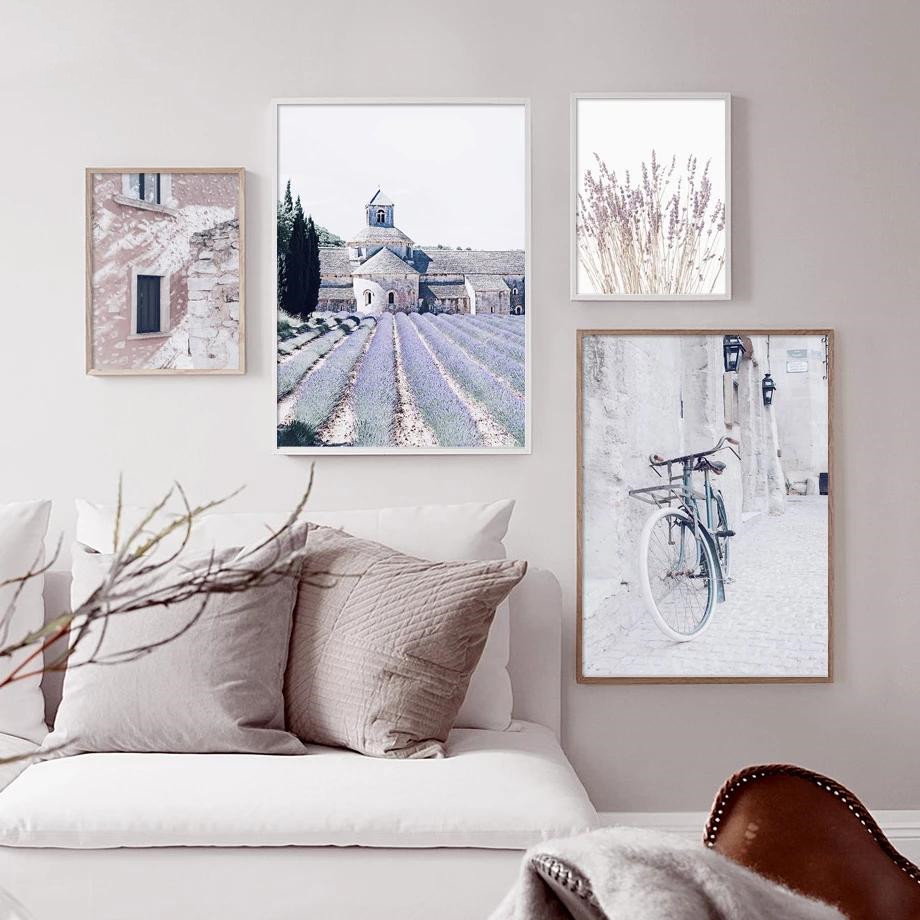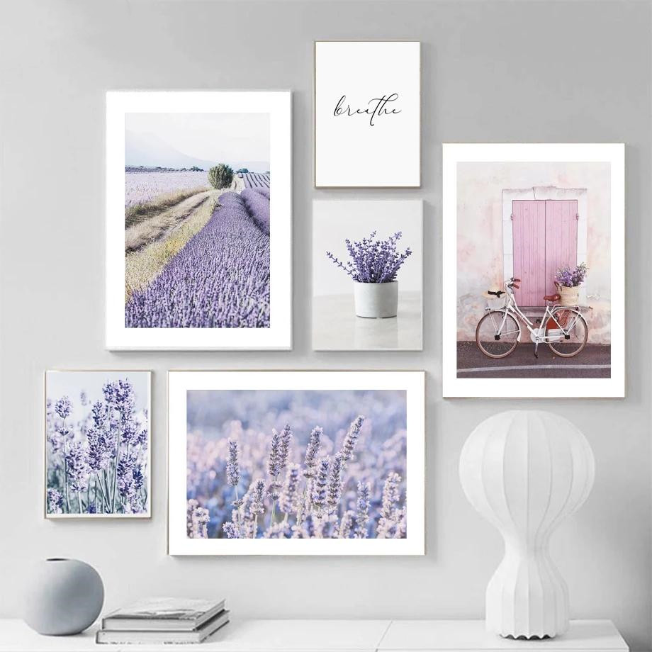 Purple Flower Field Lavender Bicycle Landscape Poster