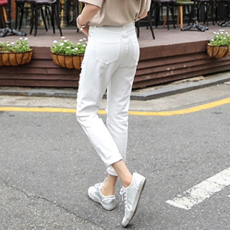 Main fabric composition: CottonContent of main fabric composition: 100%Main fabric component 2: othersLining ingredients: othersStyle: straight pantsPants length: 9-point pantsWaist type: high waist