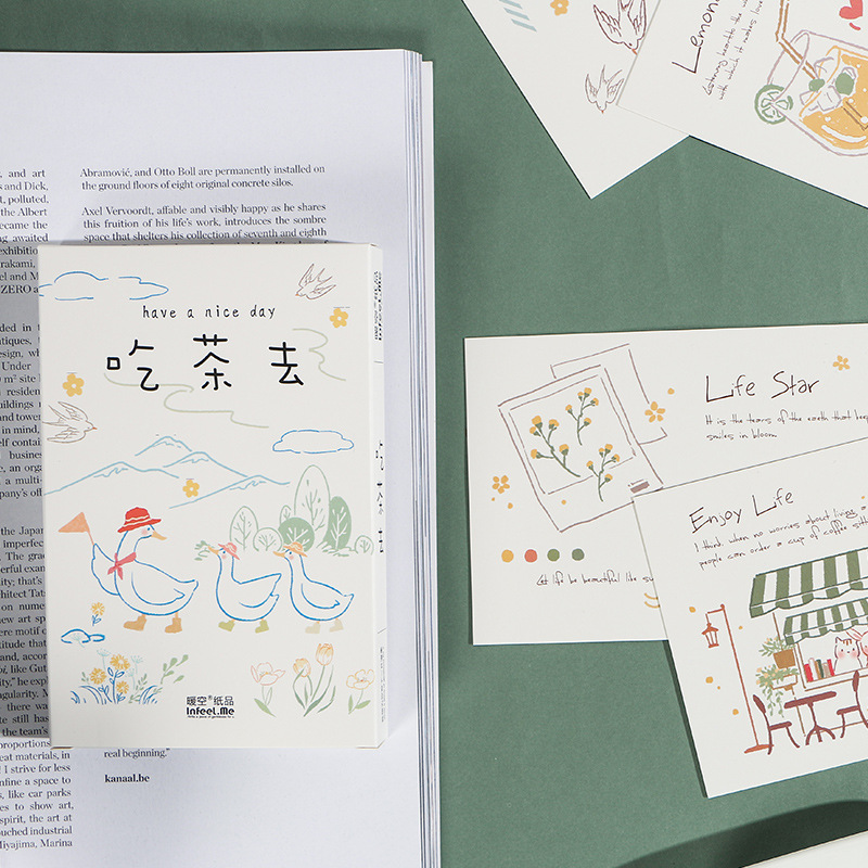 Product information:Size: tea to go postcardStyle: JapaneseName: postcardMaterial: 350g thick white cardboardDimensions: 93x 143 mmPacking list:Paper greeting card30sheets x1