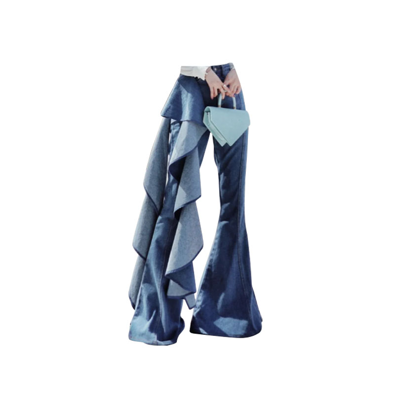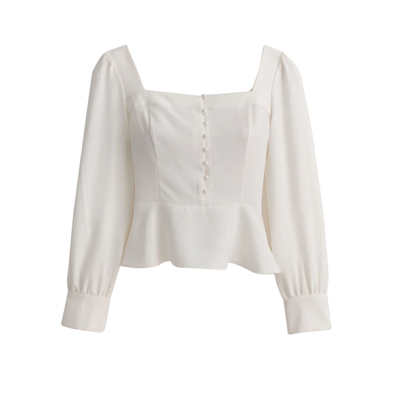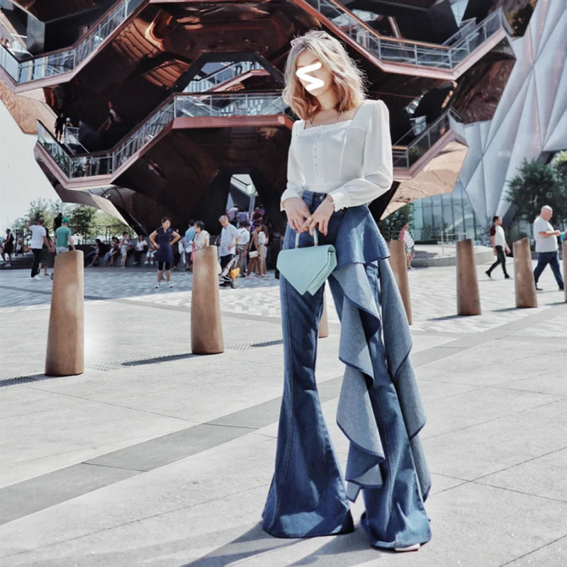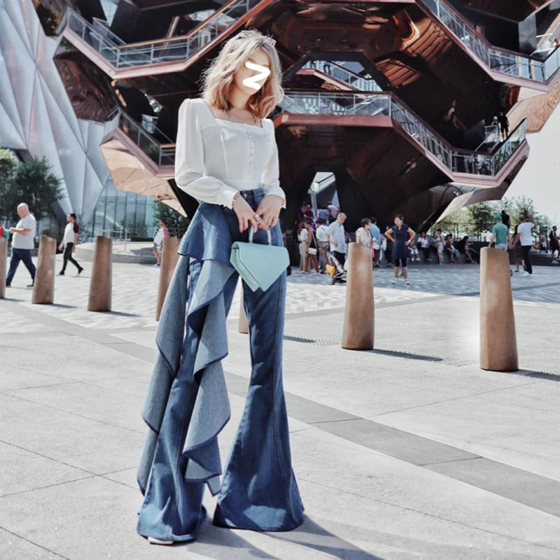 Color classification: White square neck top, irregular design jeans