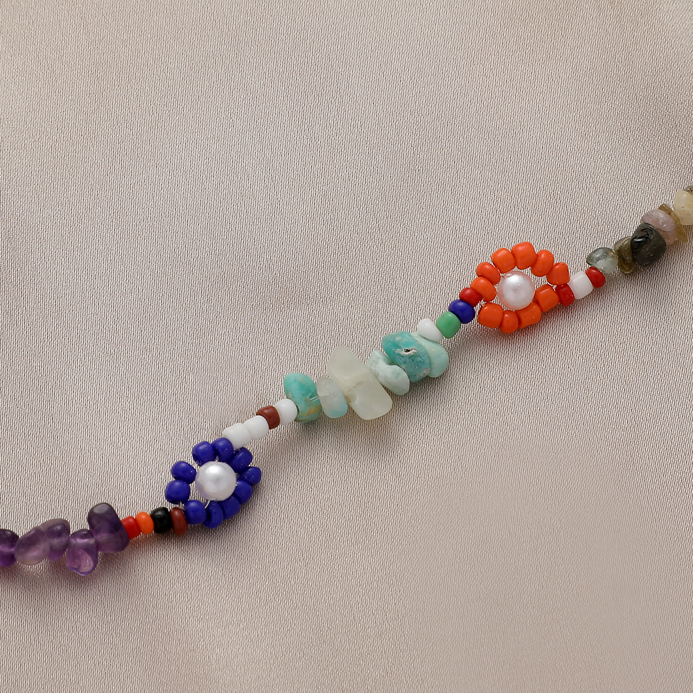 Material: rice beads + pearls + gravel + alloy