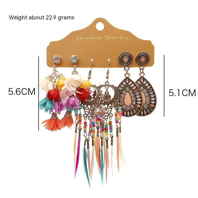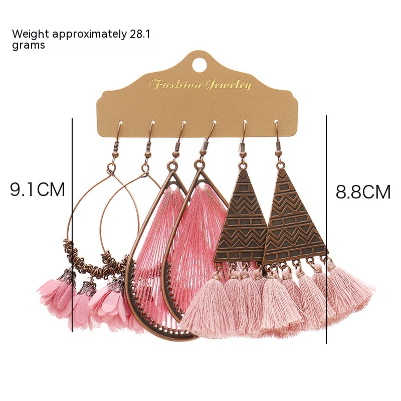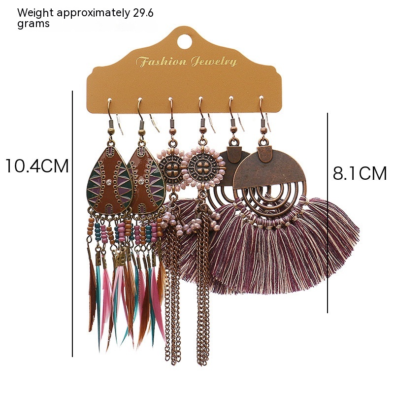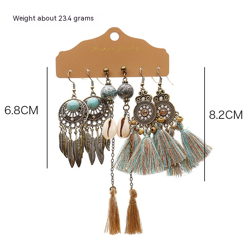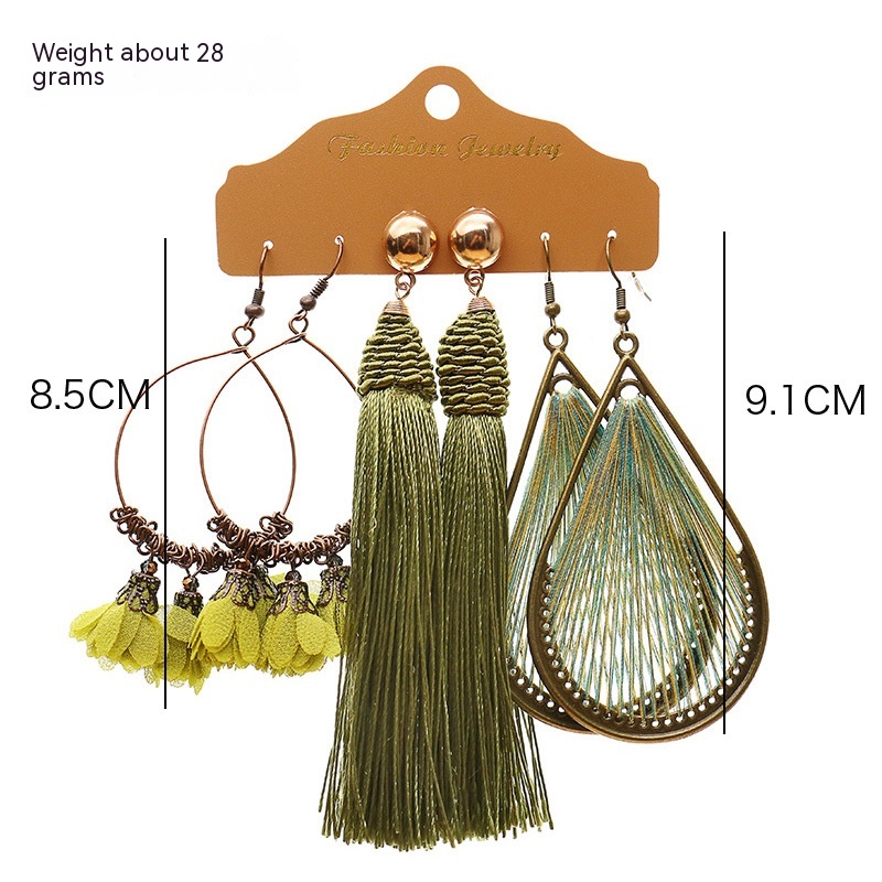 Product information:Applicable population: FemaleMaterial: hand-wovenPopular elements: Tassel, irregular, chain, asymmetricStyle: Bohemian styleCategory: earrings