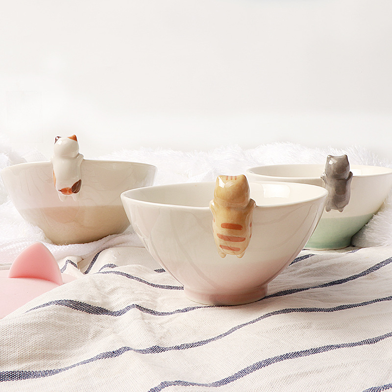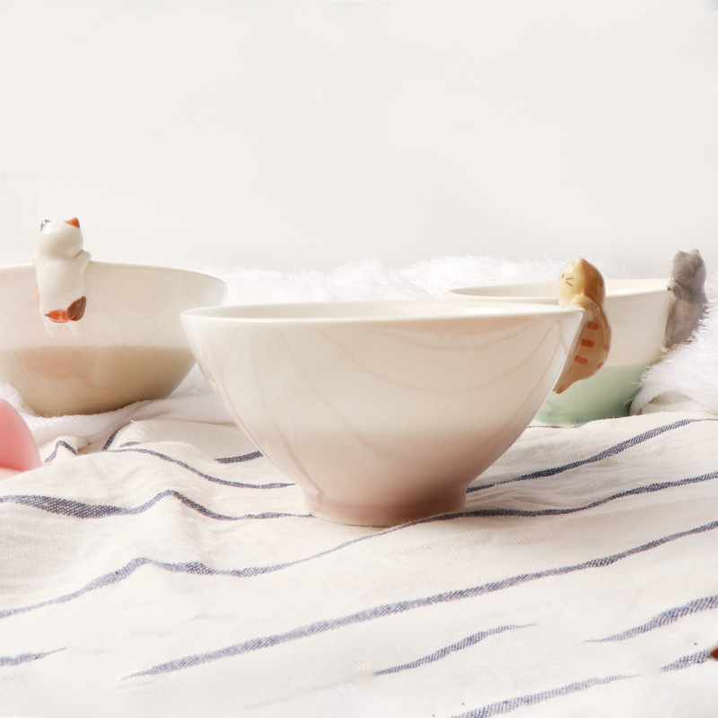 Product information:Material: PorcelainMicrowave: AvailableSurface technology: OverglazeColor: Cyan black cat bowl, pink orange cat bowl, brown flower cat bowl, a set of three cat bowlsDiameter: 10-10.9cm