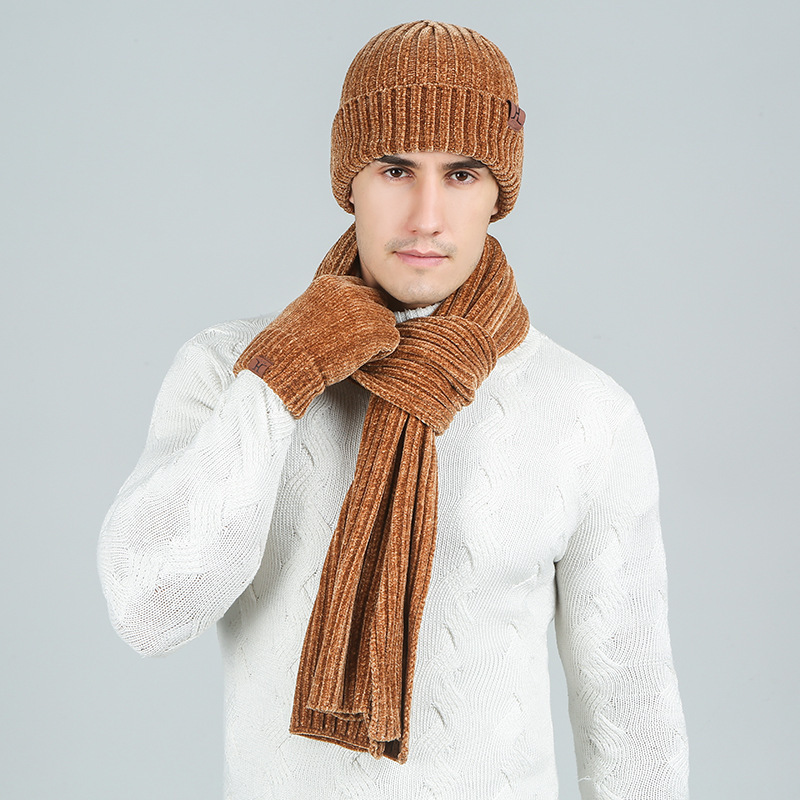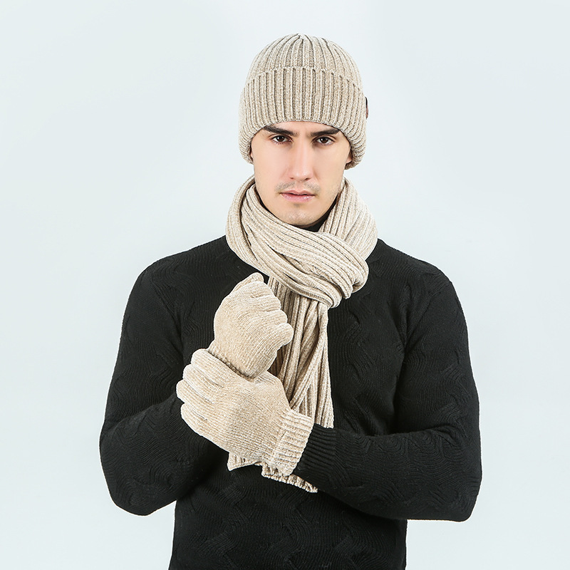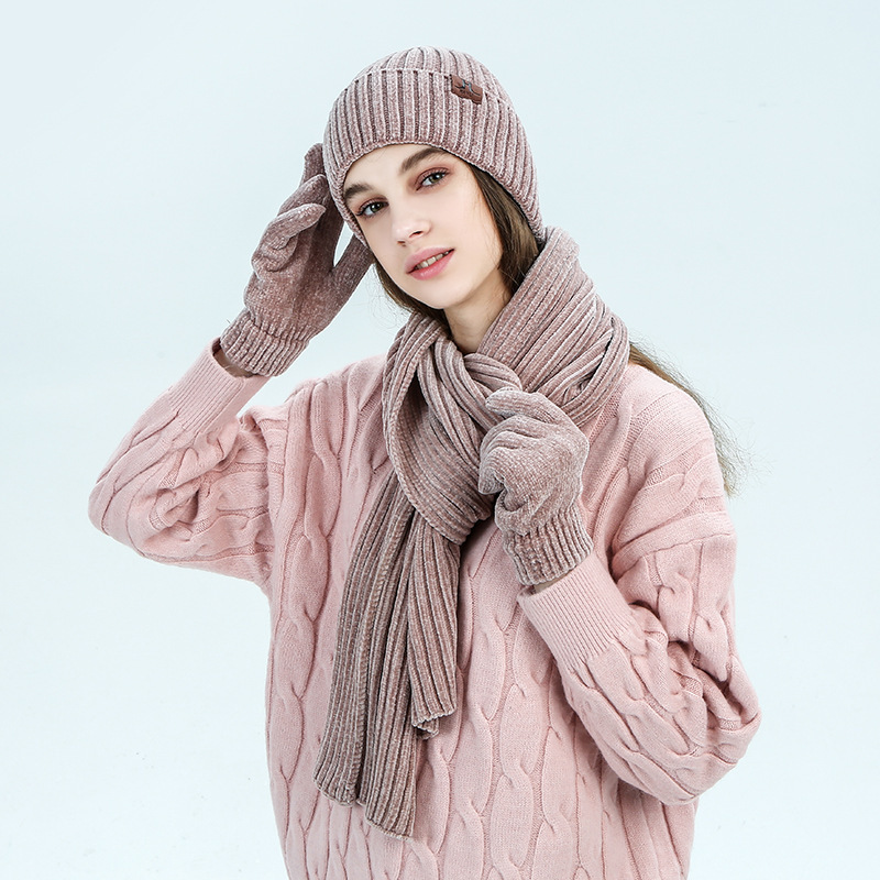 Combination: three-piece scarf, hat and gloves