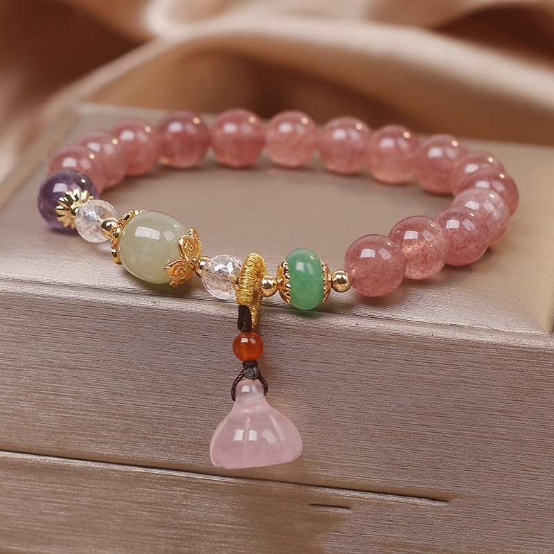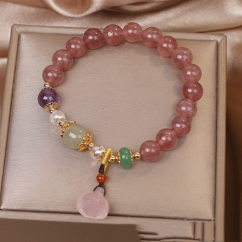 Product information:Color: redMaterial: Strawberry quartzShape: fruitPopular elements: ethnic, retro, national fashionStyle: ethnic style