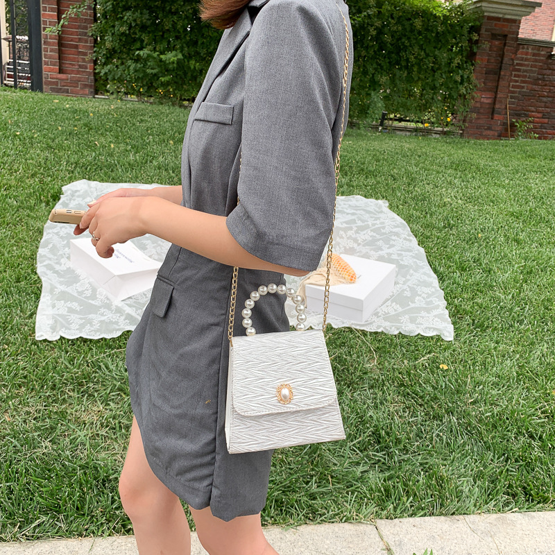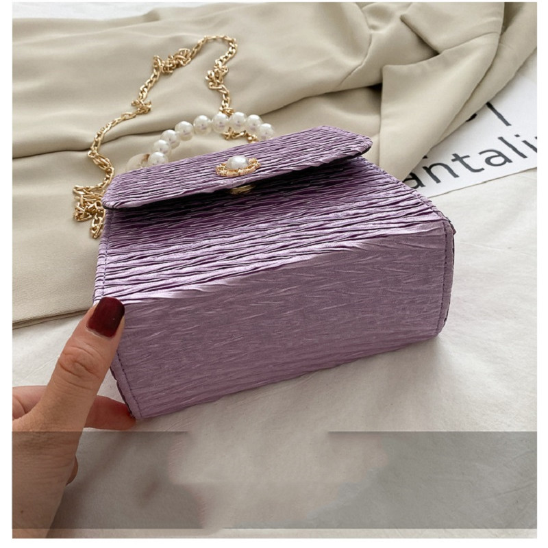 Fashion Pleated Women Messenger Handbags Pearl Handle Totes Female Lady PU Leather Casual Chain Small Shoulder Crossbody Bags