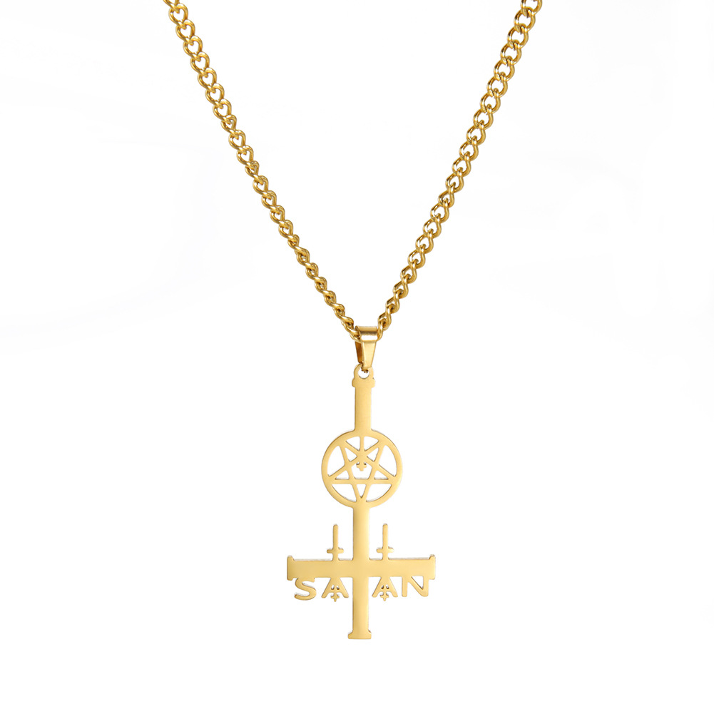 Product information:Treatment Process: Electroplating Color: steel, goldPendant material: titanium steel Chain style: cross chain Material: Stainless steel Modeling: Other Style: ins style Perimeter: 51cm (inclusive)-60cm (inclusive)