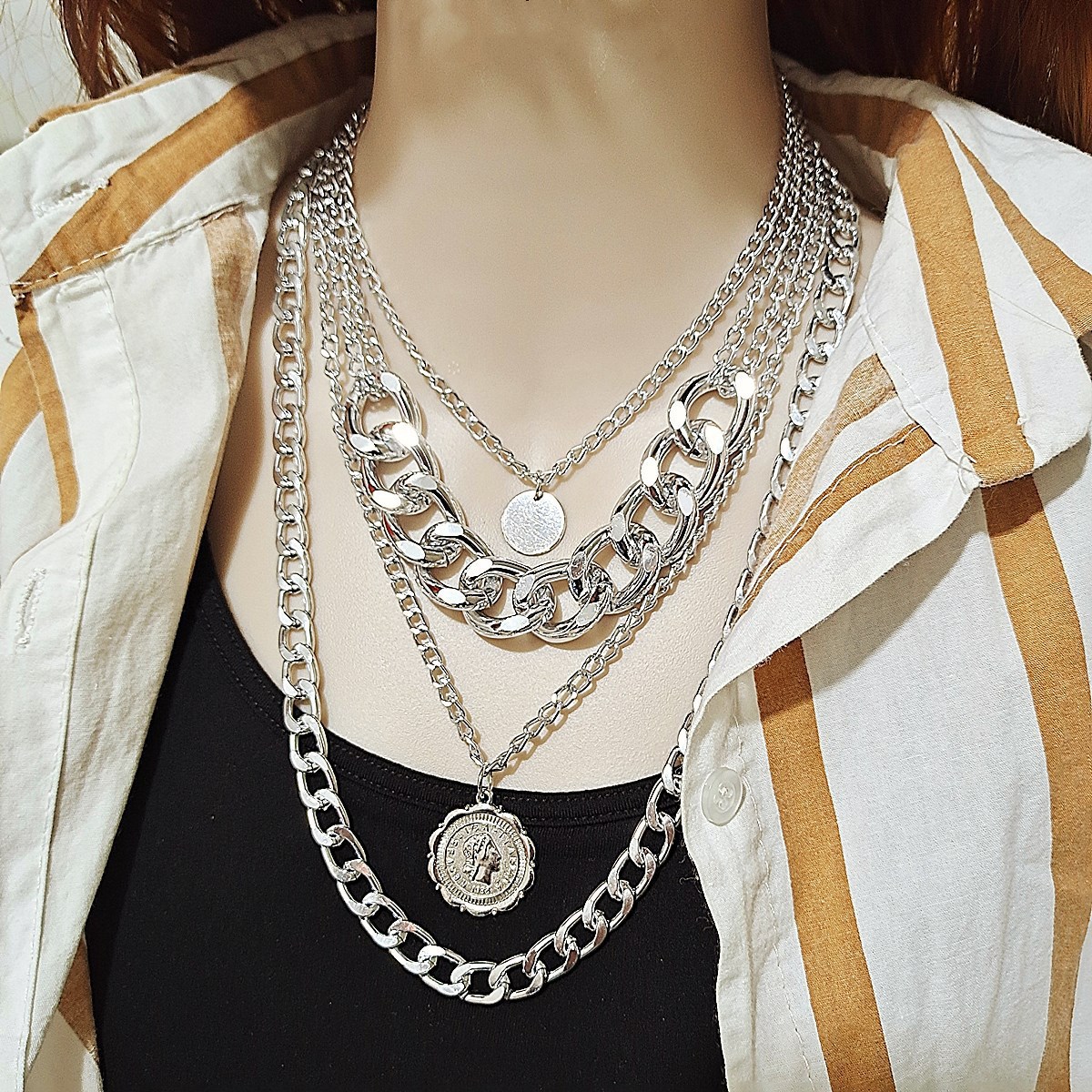 Color: multi-layer golden necklace, multi-layer silver necklace, section 2 golden necklace, section 2 silver necklace