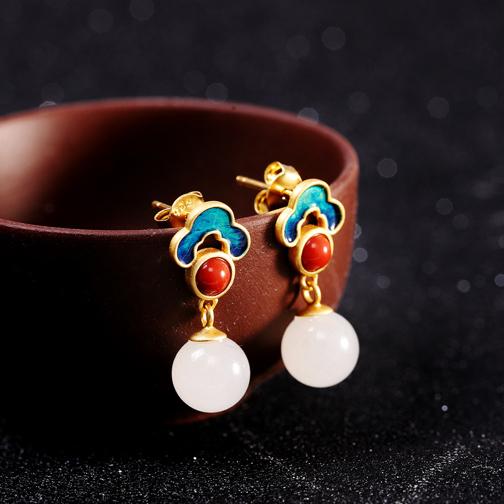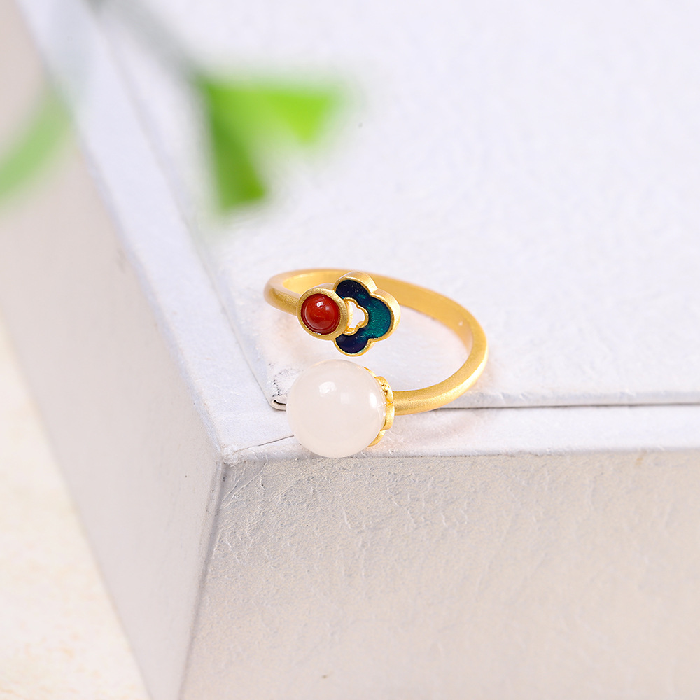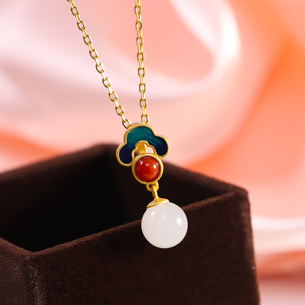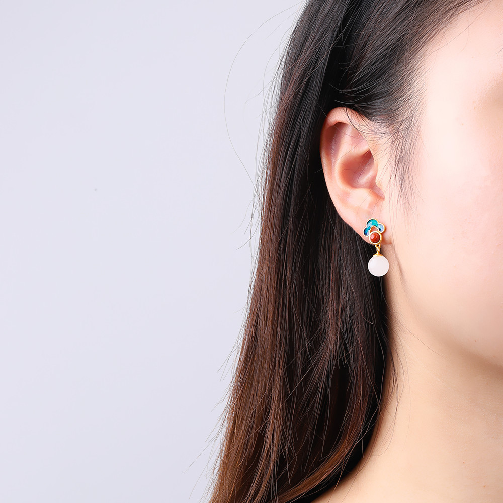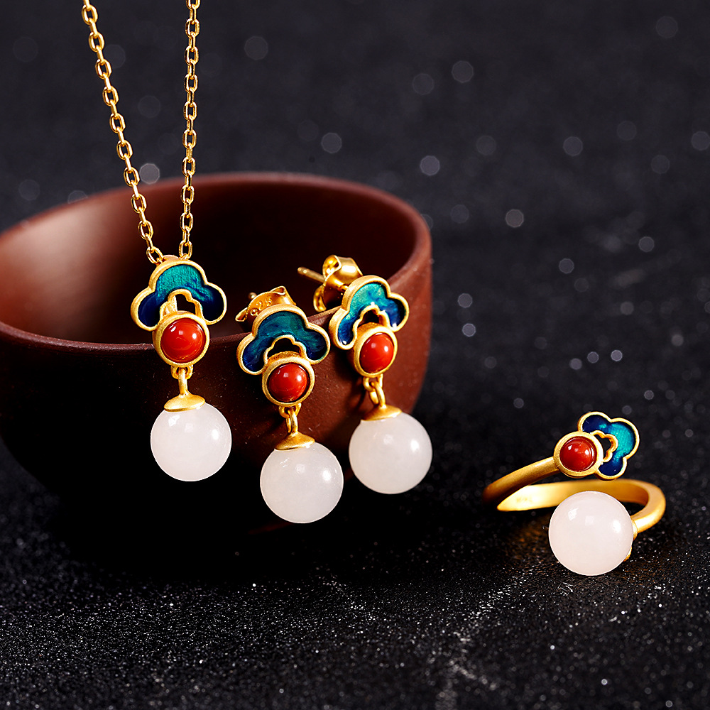 [Product size] pendant length: 2.2cm width: 0.9cm; earring length: 2.2cm width*0.9cm; ring Hetian diameter: 0.8cm