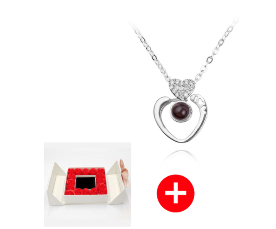 925 silver projection color photo heart necklace